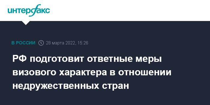 РФ подготовит ответные меры визового характера в отношении недружественных стран