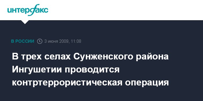 Москва. 3 июня. INTERFAX.RU - В селениях Алхасты, Аршты и Датых Сунженского района Ингушетии сотрудниками правоохранительных органов Ингушетии проводится контртеррористическая операция, направленная на задержание группы боевиков.