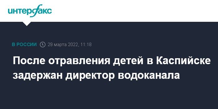 Москва. 29 марта. INTERFAX.RU - В Каспийске задержан и.о. директора местного МУП "Водоканал" после отравления двух десятков детей, сообщили в СК Дагестана.