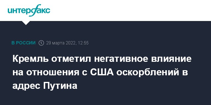 Москва. 29 марта. INTERFAX.RU - Личные оскорбления президента США Джо Байдена в адрес российского лидера Владимира Путина оказывают негативное влияние на двусторонние отношения, но диалог между странами все равно необходим, заявил пресс-секретарь президента Дмитрий Песков.
