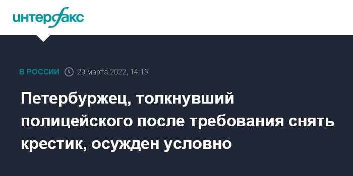 Петербуржец, толкнувший полицейского после требования снять крестик, осужден условно