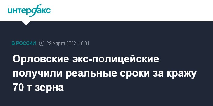 Орловские экс-полицейские получили реальные сроки за кражу 70 т зерна