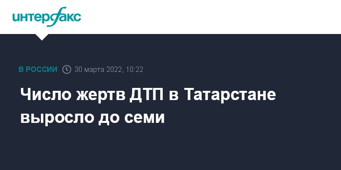 Москва. 30 марта. INTERFAX.RU - Скончался еще один пострадавший 29 марта в дорожной аварии с легковушкой и грузовиком в Чистопольском районе Татарстана, сообщили "Интерфаксу" в пресс-службе Минздрава республики в среду.
