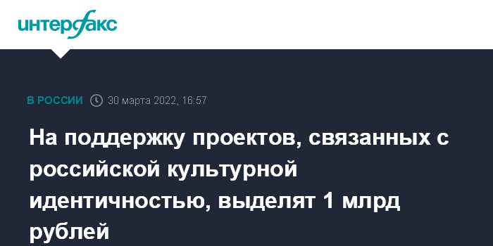 На поддержку проектов, связанных с российской культурной идентичностью, выделят 1 млрд рублей