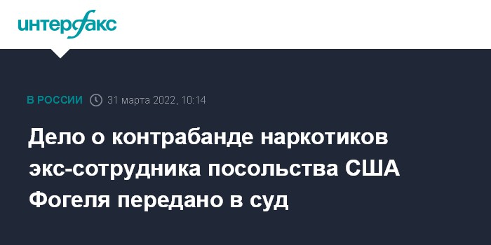 Дело о контрабанде наркотиков экс-сотрудника посольства США Фогеля передано в суд