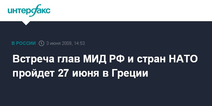 Встреча глав МИД РФ и стран НАТО пройдет 27 июня в Греции