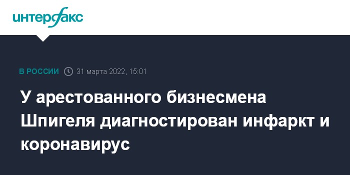 У арестованного бизнесмена Шпигеля диагностирован инфаркт и коронавирус