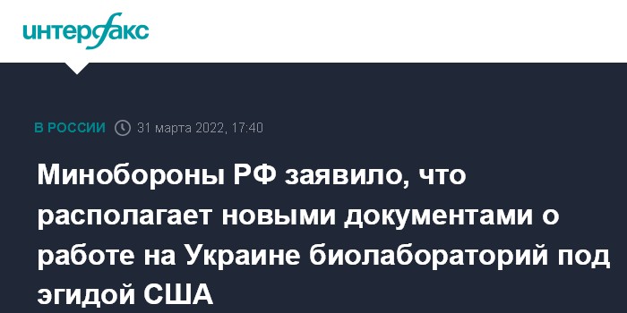 Минобороны РФ заявило, что располагает новыми документами о работе на Украине биолабораторий под эгидой США