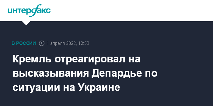 Москва. 1 апреля. INTERFAX.RU - В Кремле связывают критические высказывания французского актера Жерара Депардье, имеющего российское гражданство, по поводу специальной военной операции РФ на Украине с непониманием ситуации, заявил пресс-секретарь президента России Дмитрий Песков.