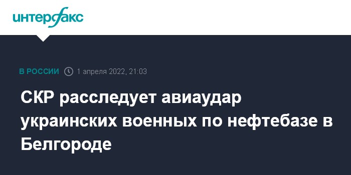 Москва. 1 апреля. INTERFAX.RU - Глава Следственного комитета РФ Александр Бастрыкин поручил расследовать обстоятельства авиаудара украинских военных по нефтебазе в Белгороде, сообщается в пятницу в телеграм-канале СКР.