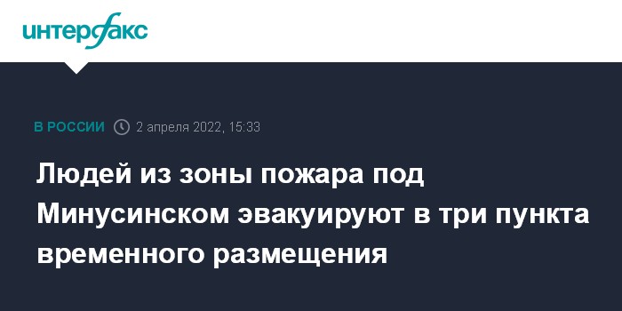 Москва. 2 апреля. INTERFAX.RU - Эвакуация людей из садовых товариществ под Минусинском, в районе которого действует природный пожар, идет в три пункта временного размещения, сообщили журналистам в субботу в пресс-службе Главного управления МВД РФ по Красноярскому краю.