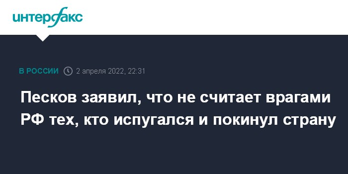 Песков заявил, что не считает врагами РФ тех, кто испугался и покинул страну