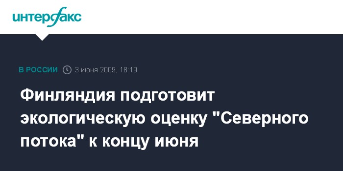 Хельсинки. 3 июня. INTERFAX.RU - Финляндия к концу июня завершит оценку воздействия на экологию газопровода "Северный поток", сообщил премьер-министр Финляндии Матти Ванханен.