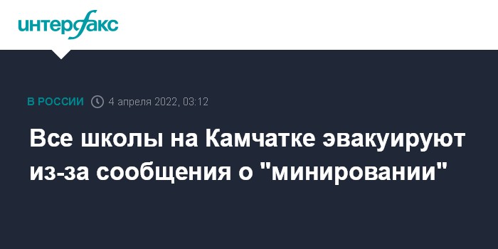 Ранее 26 января, 8 и 14 февраля, а также 14 марта после ложных сообщений об акте терроризма на Камчатке также были эвакуированы школы, опасных предметов в зданиях обнаружено не было.