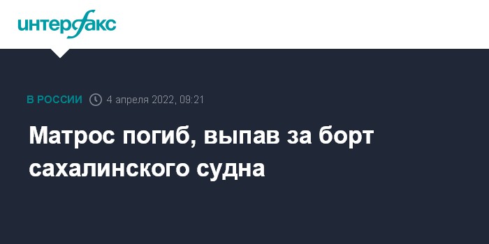 Москва. 4 апреля. INTERFAX.RU - Следователи на Сахалине проводят проверку по факту гибели матроса, выпавшего за борт морского судна "Шахтерск-6", сообщает в понедельник Восточное межрегиональное следственное управление на транспорте СКР.