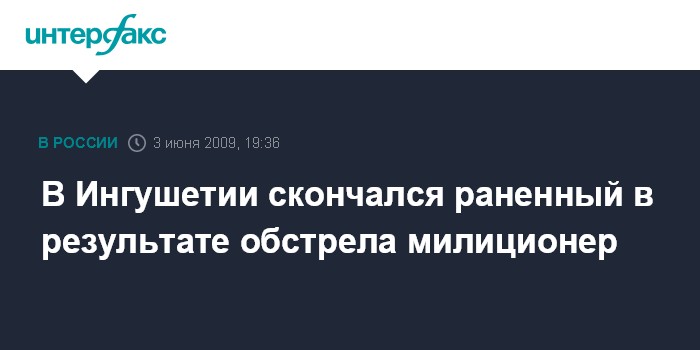 В Ингушетии скончался раненный в результате обстрела милиционер