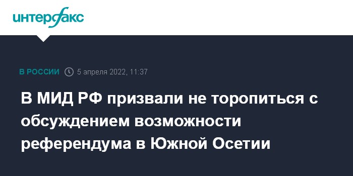 В МИД РФ призвали не торопиться с обсуждением возможности референдума в Южной Осетии