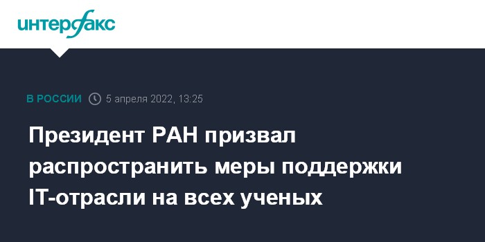 Президент РАН призвал распространить меры поддержки IT-отрасли на всех ученых