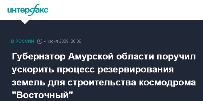 Как сообщили агентству "Интерфакс-Дальний Восток" в пресс-службе областного правительства, в компетенцию областных властей входит согласование по резервированию земельных участков Амурской области для размещения объектов наземной космической инфраструктуры космодрома