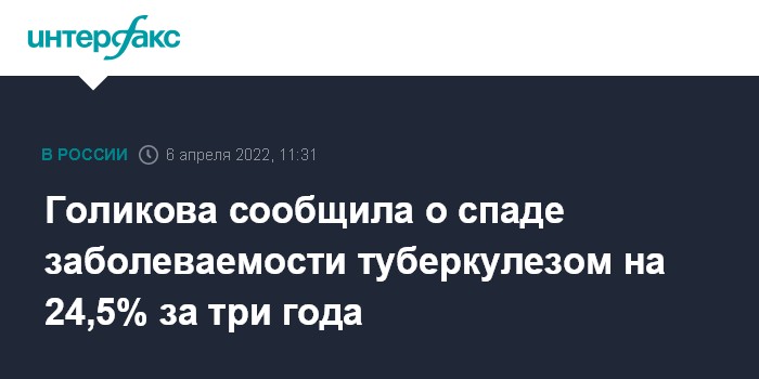 Голикова сообщила о спаде заболеваемости туберкулезом на 24,5% за три года
