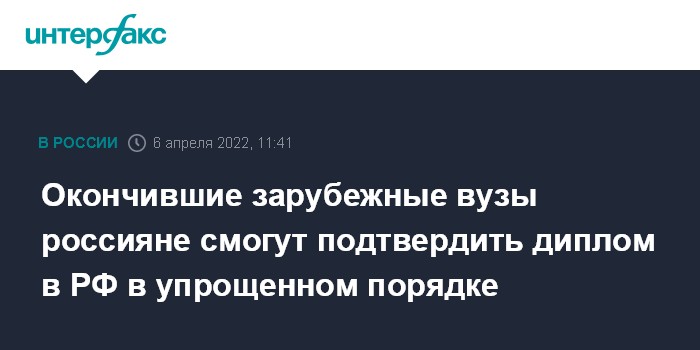 В пресс-службе добавили, что "из-за действий недружественных государств прямые запросы о подтверждении подлинности информации об обучении и получении того или иного конкретного диплома в зарубежные компетентные организации сейчас затруднены. Поэтому правительство приняло упрощённый порядок признания зарубежного образования и квалификации".