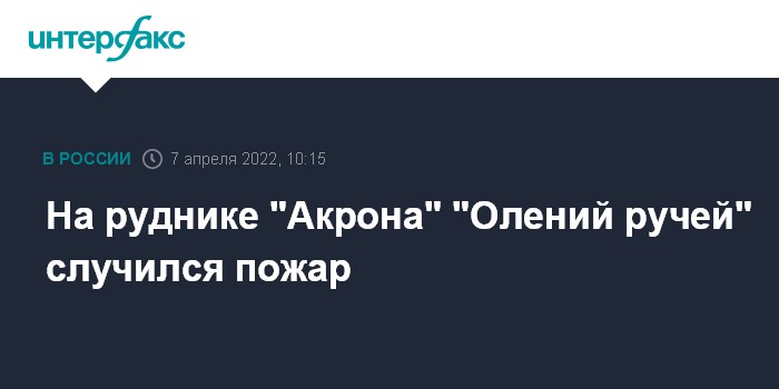 На руднике "Акрона" "Олений ручей" случился пожар