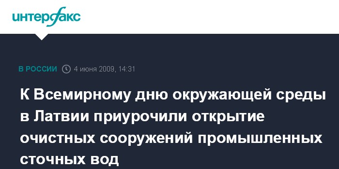 Рига. 4 июня. ИНТЕРФАКС - Новые очистные сооружения промышленных сточных вод, в которых реализован принцип биологической очистки с применением современнейших технологий, открывает в Риге АО "Гриндекс".