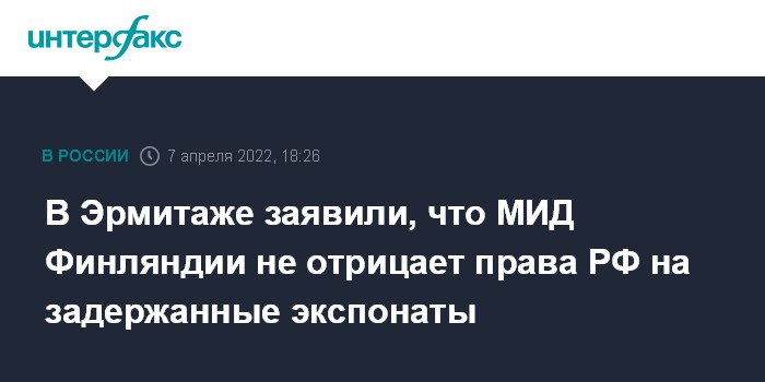 Тем не менее, добавил он, так как 15 марта Евросоюз утвердил регламент 2022/428 об ограничительных мерах, Финляндия обратилась с запросом в Еврокомиссию относительно ситуации вокруг задержания экспонатов.