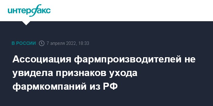 Ассоциация фармпроизводителей не увидела признаков ухода фармкомпаний из РФ