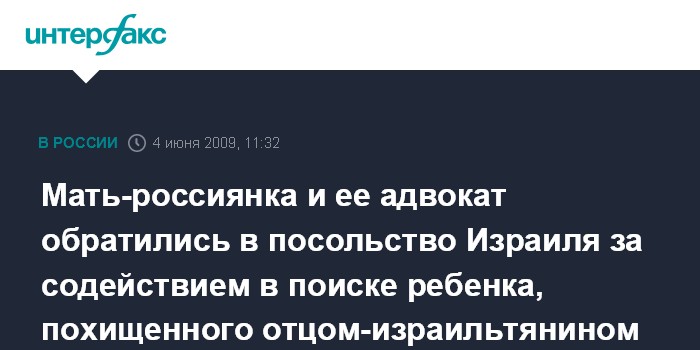 Мать-россиянка и ее адвокат обратились в посольство Израиля за содействием в поиске ребенка, похищенного отцом-израильтянином
