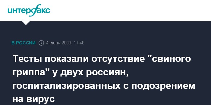 "Грипп A(H1N1) у них не обнаружен", - сказал он "Интерфаксу" в четверг.