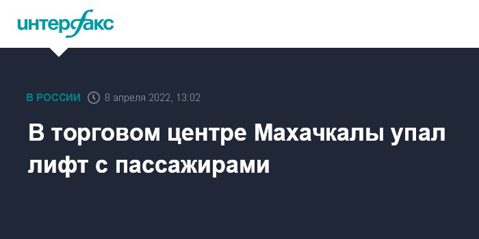 Москва. 8 апреля. INTERFAX.RU - В Махачкале в торговом центре на улице Магомедташирова сорвался лифт с пассажирами и упал в шахту, сообщили в МВД Дагестана.