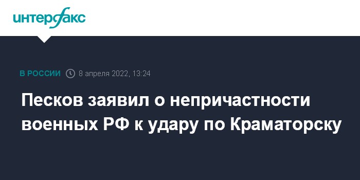 Песков заявил о непричастности военных РФ к удару по Краматорску