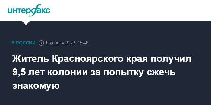 Житель Красноярского края получил 9,5 лет колонии за попытку сжечь знакомую