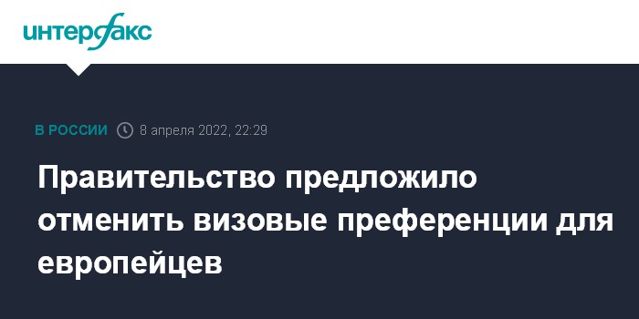 Москва. 8 апреля. INTERFAX.RU - Правительство внесло в Госдуму законопроект № 03295-8 об отмене ряда визовых преференций для граждан большинства стран Европы.