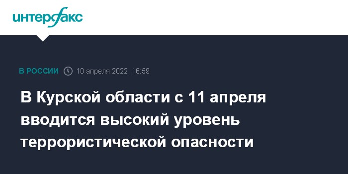 В Курской области с 11 апреля вводится высокий уровень террористической опасности