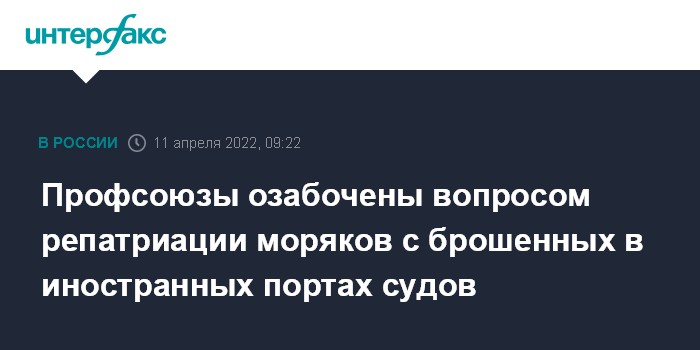 Москва. 11 апреля. INTERFAX.RU - Количество брошенных в иностранных портах судов на фоне введенных в отношении РФ санкций может вырасти, необходимо активизировать работу по страхованию экипажей в рамках Конвенции 2006 года, сообщил председатель Дальневосточной региональной организации Российского профсоюза моряков (ДВРО РПСМ) Николай Суханов.