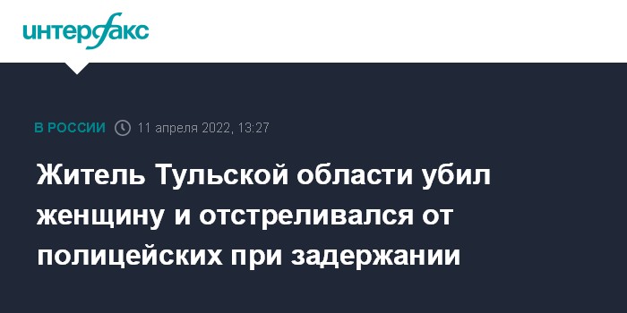 Москва. 11 апреля. INTERFAX.RU - Тульские полицейские задержали мужчину, устроившего стрельбу, в результате которой погибла женщина, сообщил "Интерфаксу" в понедельник начальник пресс-службы регионального УМВД Андрей Ярцев.