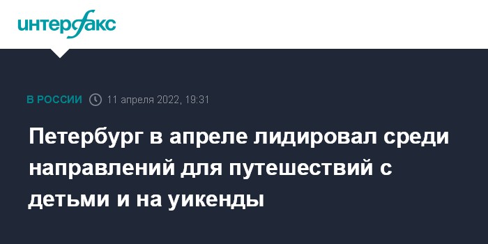Петербург в апреле лидировал среди направлений для путешествий с детьми и на уикенды