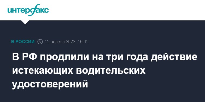 Москва. 12 апреля. INTERFAX.RU - Правительство продлило на три года действие российских водительских удостоверений, срок действия которых истекал в ближайшие два года, заявил премьер РФ Михаил Мишустин.