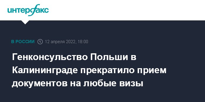 Москва. 12 апреля. INTERFAX.RU - Генеральное консульство Польши в Калининграде временно не будет выдавать жителям области все виды виз, сообщило правительство региона.