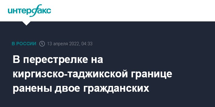 Москва. 13 апреля. INTERFAX.RU - Двое гражданских пострадали в результате перестрелки на киргизско-таджикской границе, сообщили в среду "Интерфаксу" в Минздраве Киргизии.