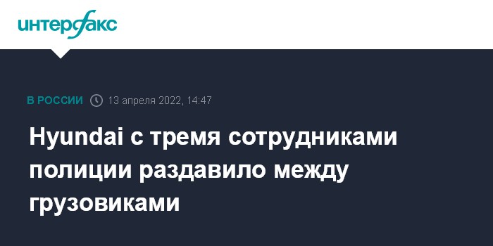 Hyundai с тремя сотрудниками полиции раздавило между грузовиками