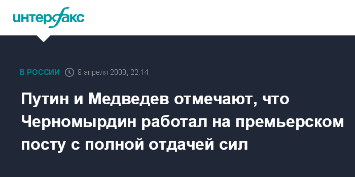 Путин и Медведев отмечают, что Черномырдин работал на премьерском посту с полной отдачей сил