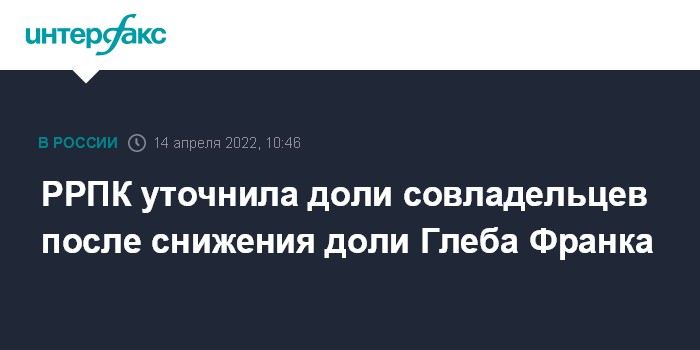 РРПК уточнила доли совладельцев после снижения доли Глеба Франка