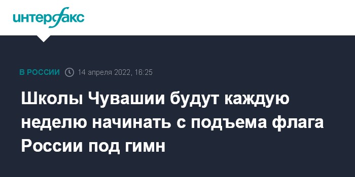 Москва. 14 апреля. INTERFAX.RU - В Чувашии уже с 18 апреля введут традицию в начале каждой учебной недели проводить перед занятиями церемонию подъема государственного флага под гимн России, сообщило региональное Минобразования.