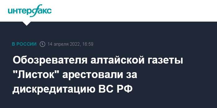 Обозревателя алтайской газеты "Листок" арестовали за дискредитацию ВС РФ