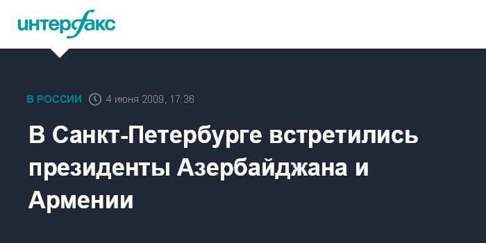 Москва. 4 июня. INTERFAX.RU - Президенты Азербайджана и Армении Ильхам Алиев и Серж Саргсян провели в четверг рабочую встречу при участии представителей Минской группы ОБСЕ. Подробности встречи пока не известны. Позднее должны состояться раздельные встречи президента России Дмитрия Медведева с президентами этих двух стран.