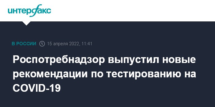 Москва. 15 апреля. INTERFAX.RU - Роспотребнадзор рекомендовал проводить тестирование граждан на коронавирусную инфекцию, учитывая активность эпидемического процесса в каждом конкретном регионе, следует из методических рекомендаций, опубликованных на сайте ведомства.