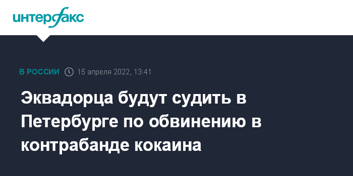 Москва. 15 апреля. INTERFAX.RU - Гражданин Эквадора предстанет перед судом в Петербурге по делу о контрабанде и сбыте наркотиков в особо крупном размере, сообщает в пятницу пресс-служба Генеральной прокуратуры.
